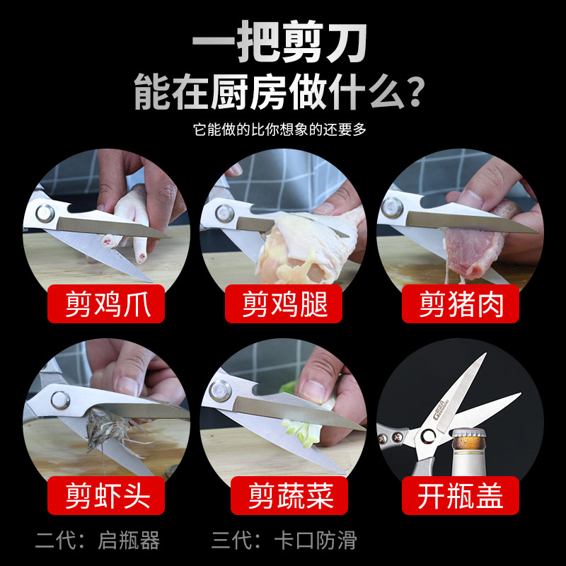 Giant Zhengsheng Kitchen Scissors Powerful Chicken Bone Cut Multifunction Cut Stainless Steel Home Kitchen Scissors Open Bottle Scissors