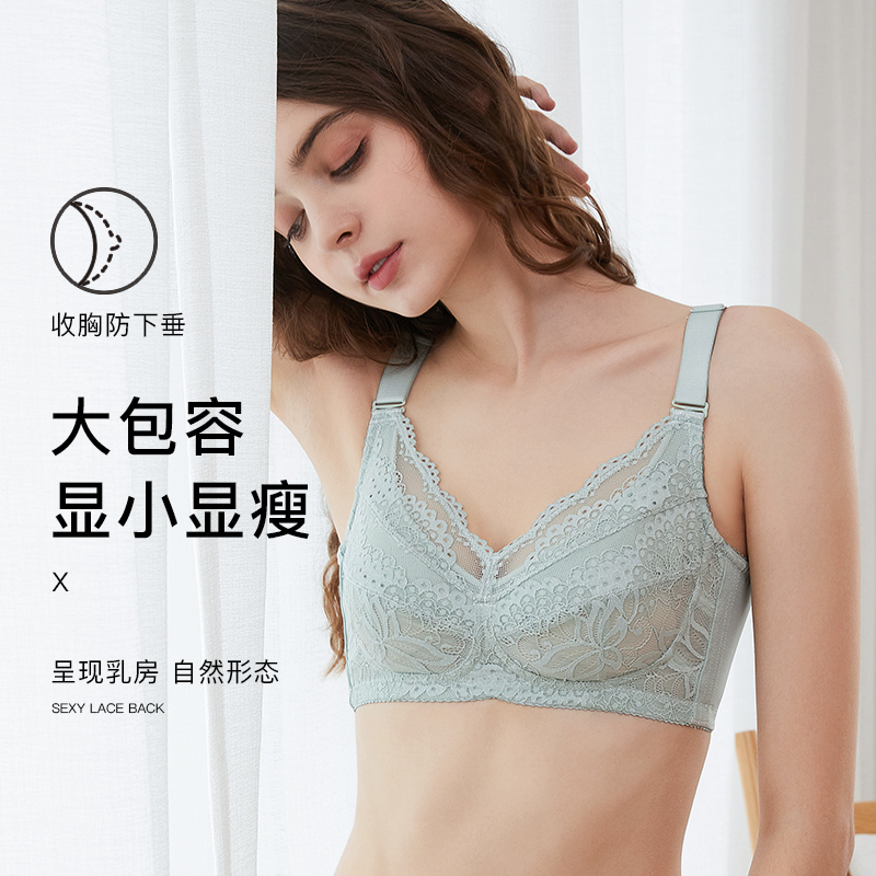 Underwear women's summer thin bra large chest small rimless bra Large size full cup no sponge ultra-thin bra