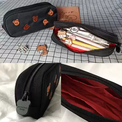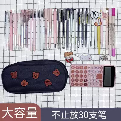 Korean version of the large-capacity pencil bag Korean simple female canvas retro style literary Cornetto function net red girl bear stationery box High school pencil bag Japanese junior high school students primary school students male ins tide