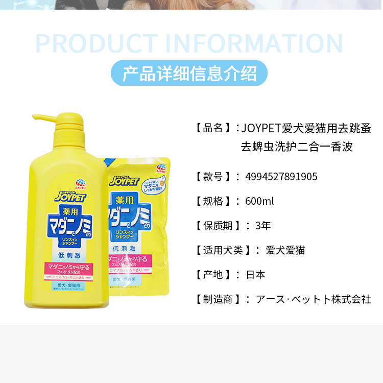 Japanese joypet kitty Puppy dog body wash with flea deinsectites de-mite except for bacteria anti-bacteria Pet Bathing Shampoo
