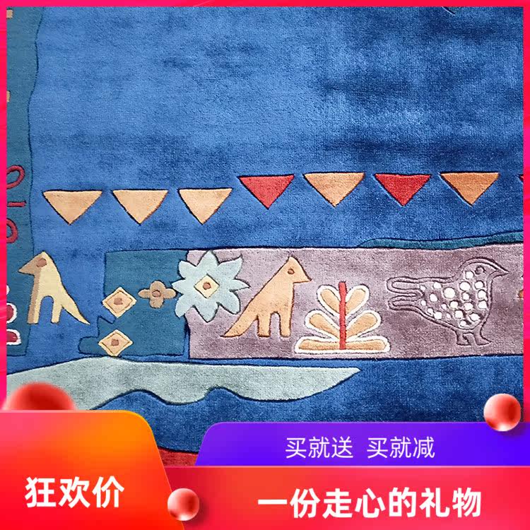Pure hand-knotted silk blanket living room bedroom coffee table children's room blue cartoon carpet cutting blanket spot