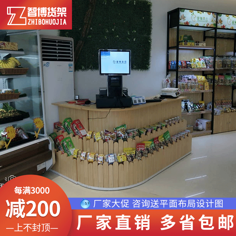 Supermarket fruit shop cash register counter Pastoral style wooden fruit and vegetable shop weighing table Fruit garden corner multi-function cash drawer