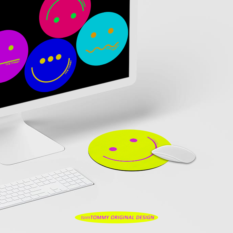 Tom original office mouse pad smiley trumpet creative home game office personality round simple ins tide