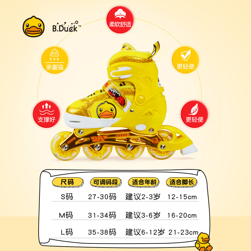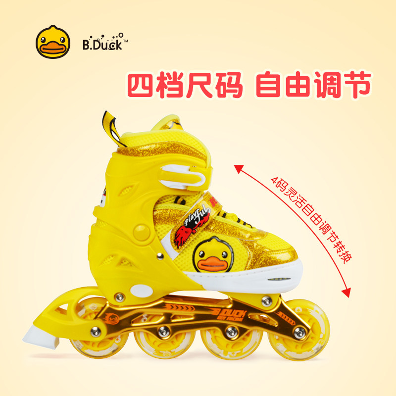 B Duck little yellow duck roller skates Children skating skates Full set of adjustable flash roller skates for beginners for boys and girls