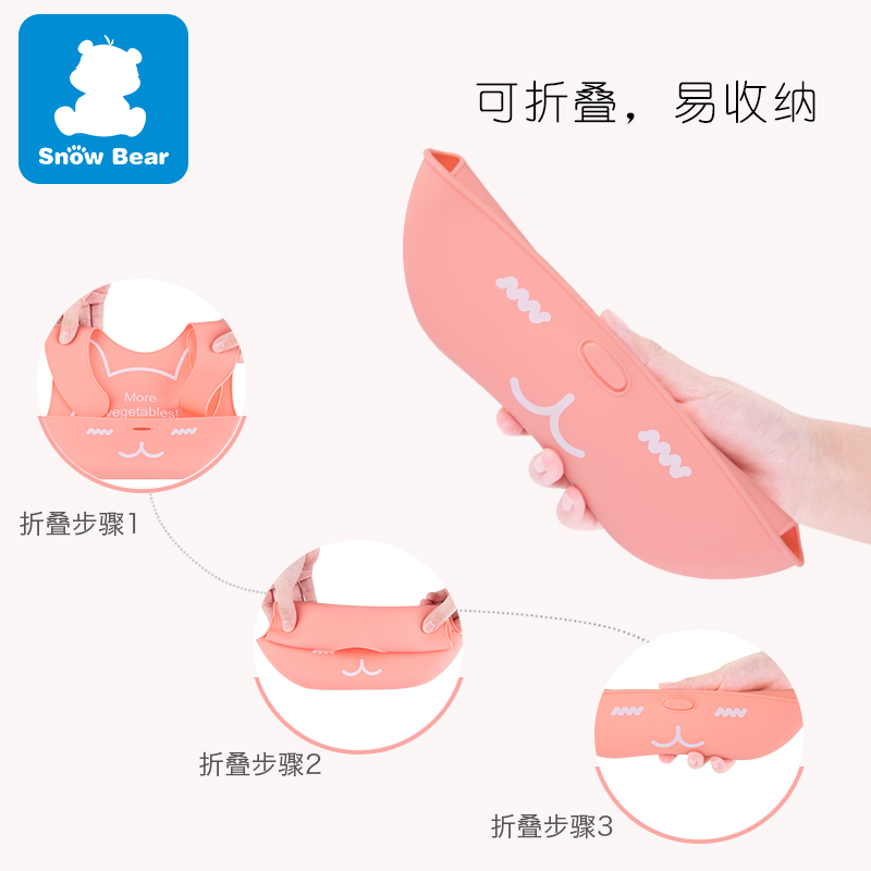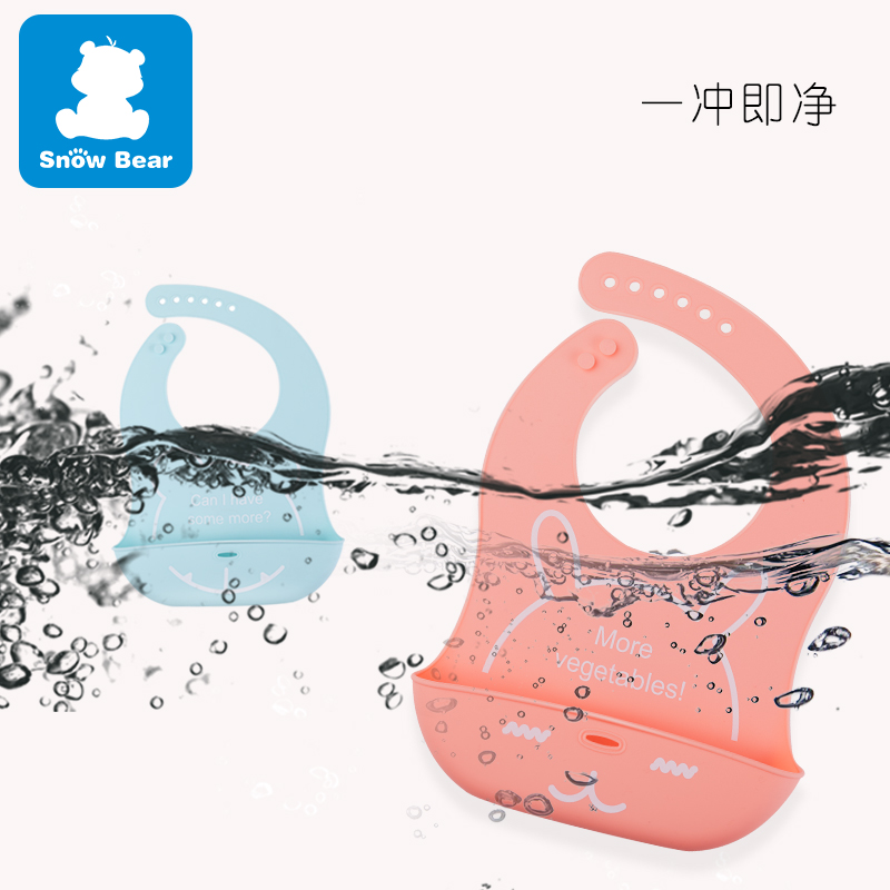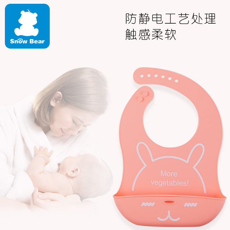 Small white bear silicone bib Baby three-dimensional waterproof food eating bib Large baby feeding bib eating pocket soft