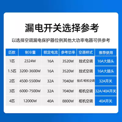 Air conditioning switch leakage protector 3p horse Cabinet machine special 32A40A water heater empty Open 220V circuit breaker household