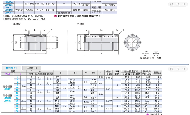 Straight column type linear bearing double liner type LMC11 12 13-d 4 8 10 12 12 20 20 25 30 50