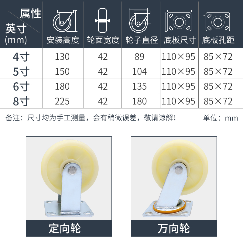 4-inch directional wheel 4-inch universal wheel 5-inch directional wheel 5-inch universal wheel 6-inch directional wheel 6-inch universal wheel 8-inch directional wheel 8-inch universal wheel 4-inch directional wheel (thickened) 4
