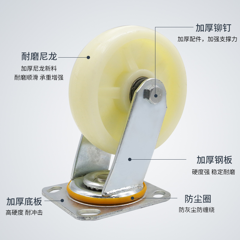 Universal wheel heavy duty nylon wheel 4568 inch base with brake directional steering caster small flat trolley wheel