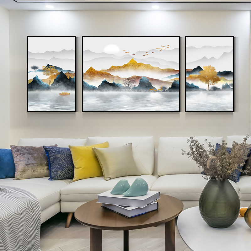 Living room decorative painting sofa background wall hanging painting back with mountain light luxury modern simple atmosphere triple landscape mural