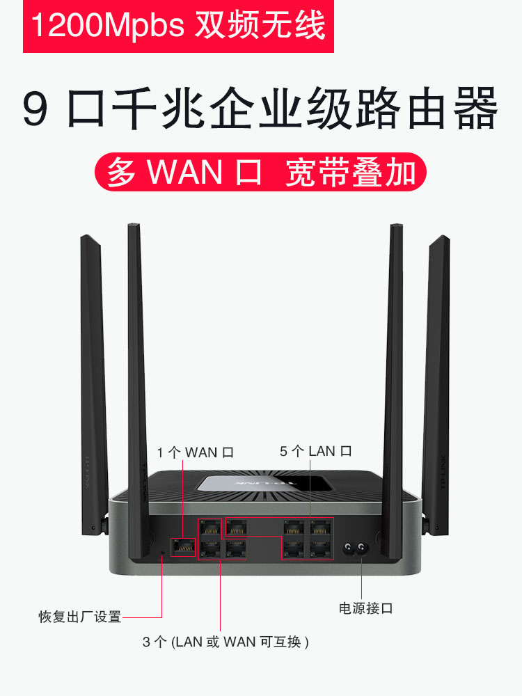 TP-LINK All one thousand trillion Ports Enterprise-grade wireless routers Dostomy commercial 9 holes Super high speed wifi wearing wall king 8 connectors 8 6 dual frequency 5G Corporate office Home Large terrace number of wires