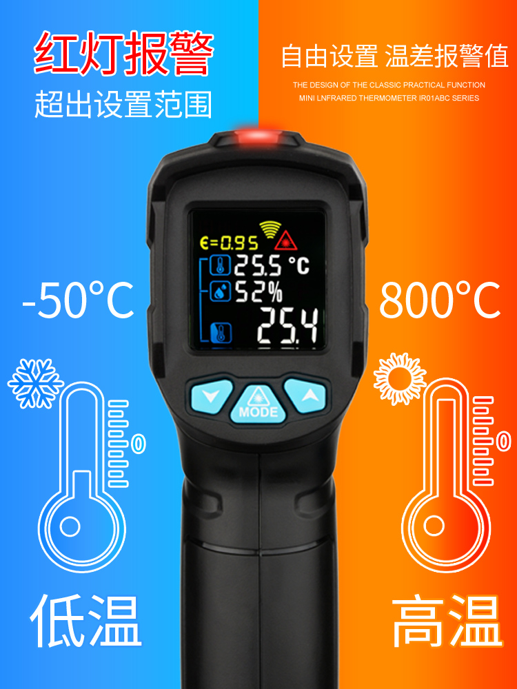 Infrared thermometer high precision industrial temperature measurement gun handheld oil temperature thermometer air conditioning outlet thermometer