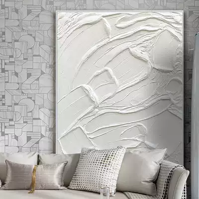 Hand-painted oil painting modern simple abstract pure white thick texture decorative painting porch living room landing large hanging painting
