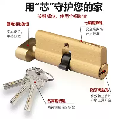 Door lock door lock cylinder household door lock cylinder universal type small 70 wooden door lock core pure copper bedroom lock cylinder accessories