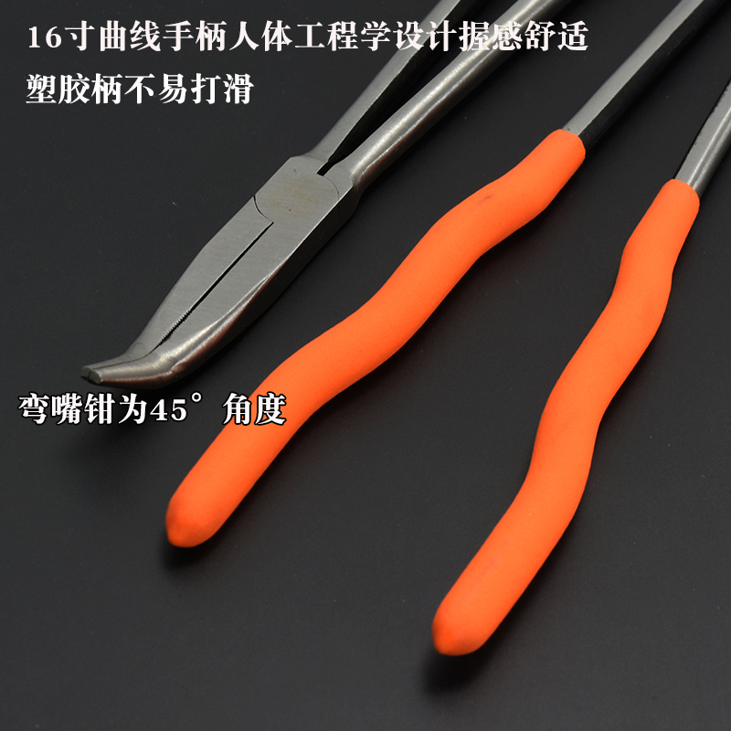 Lengthened sharp mouth pliers 11-inch 16-inch bending mouth pliers 45-degree 90-degree O-type grip pliers lengthened handle long mouth litter pliers