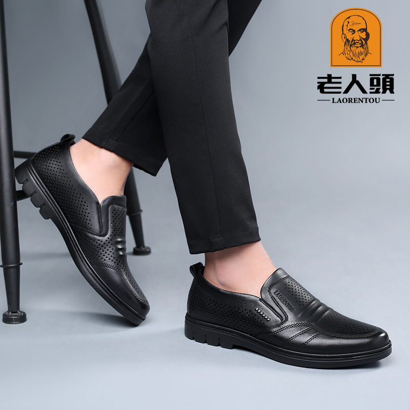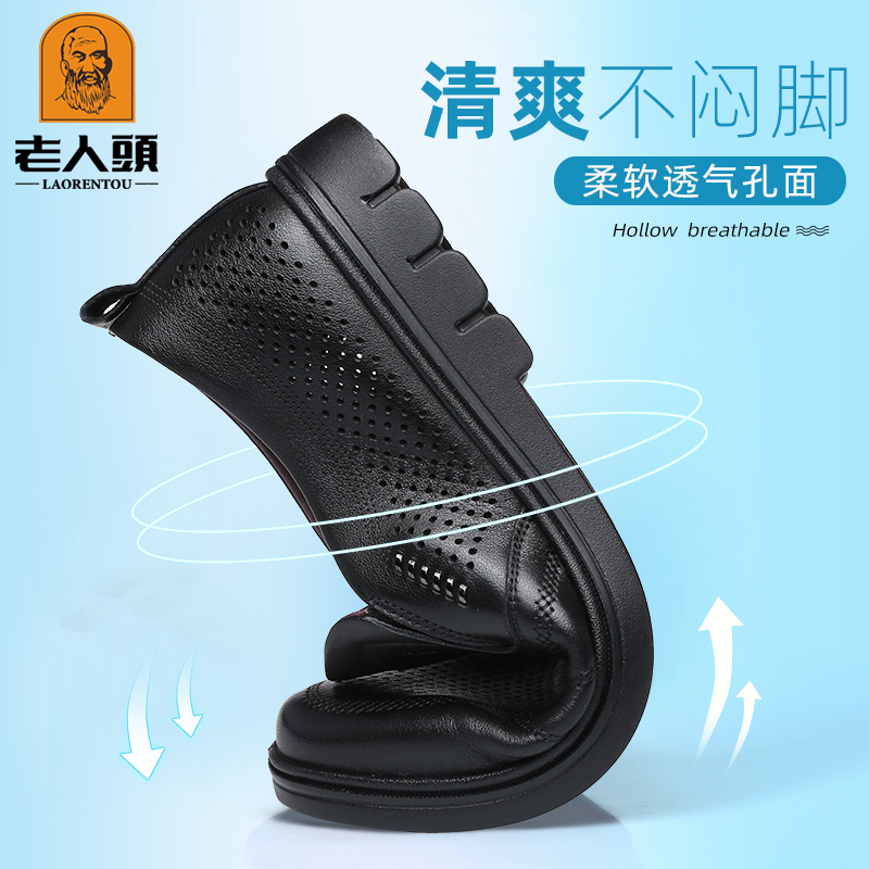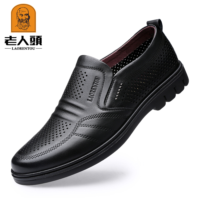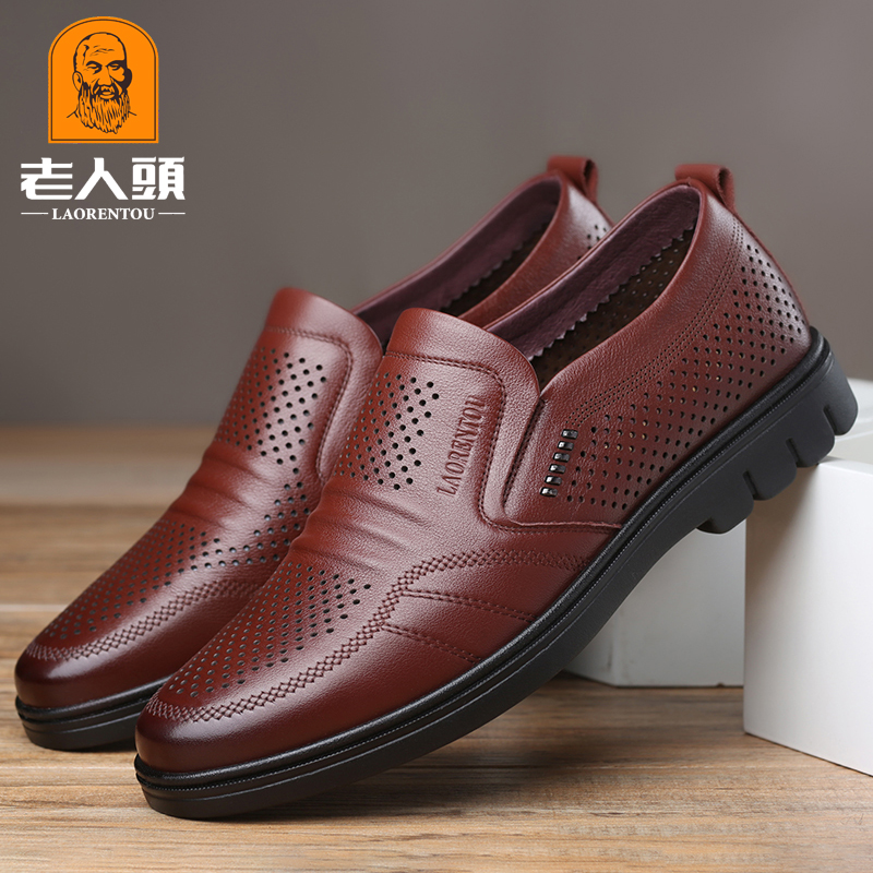 Old man's head men's shoes 2022 Summer business casual hollowed-out real cow leather shoes breathable soft bottom perforated leather sandals men