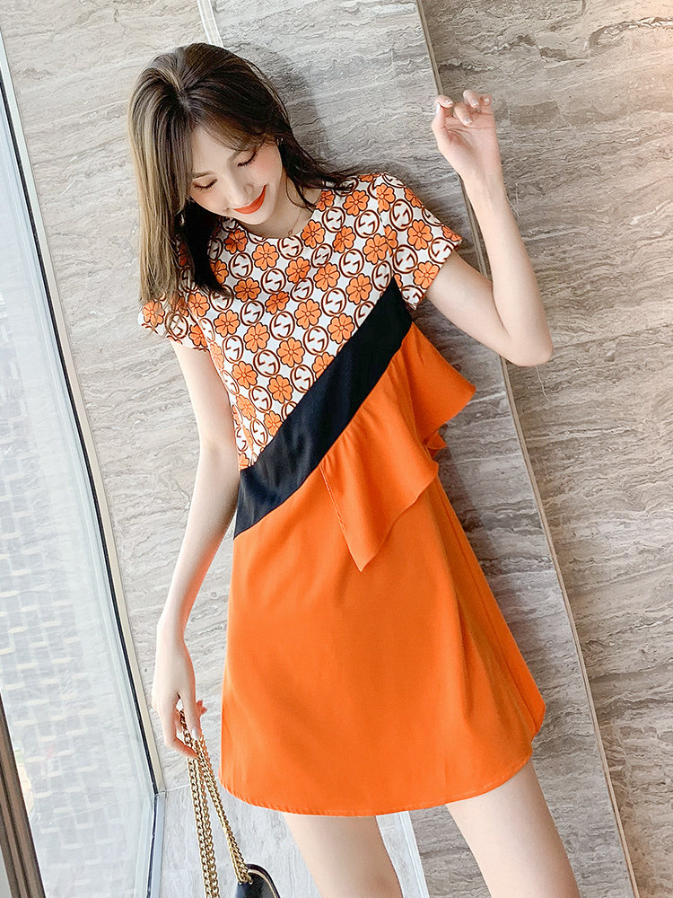 Printing Ruffles Asymmetric Stitching Three-dimensional Decoration