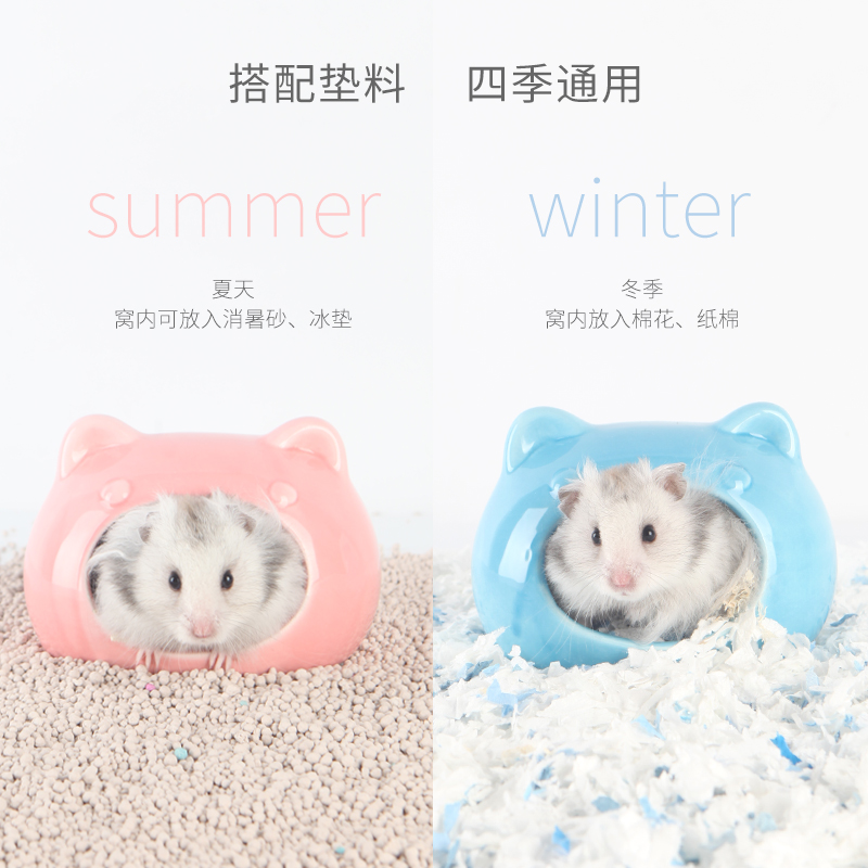 Hamster Ceramic Nest Shell House Gold Silk Bear Flowers Sage summer Cooling Bed Supplies Small House Summer Heat Escape Ice House