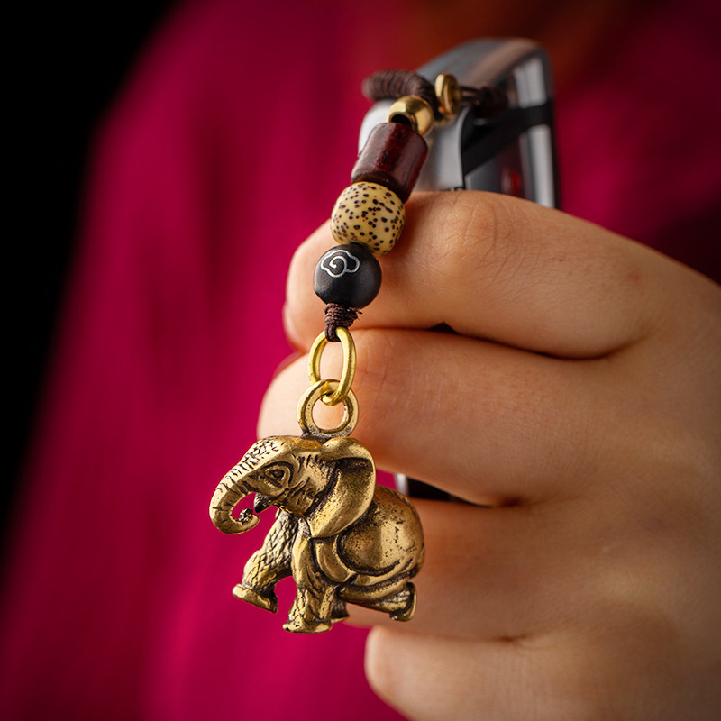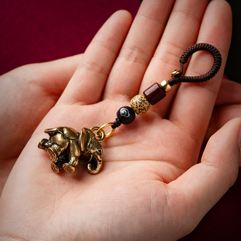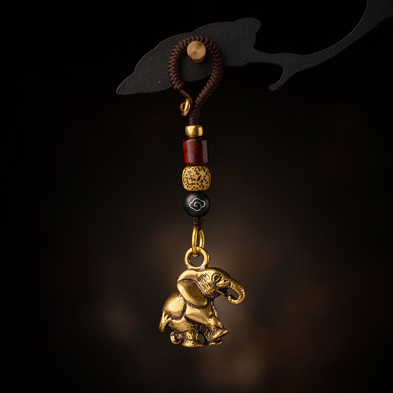 Creative Handcrafted Solid Elephant Key Buckle Brass Retro Hanging Ornament Auspicious Car Hanging Ornament Hand Woven