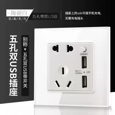 White national standard five-hole socket White dislocation five-hole socket white seven-hole socket white five-hole socket with double USB socket White 16A air conditioner three-hole socket White one open single control with five