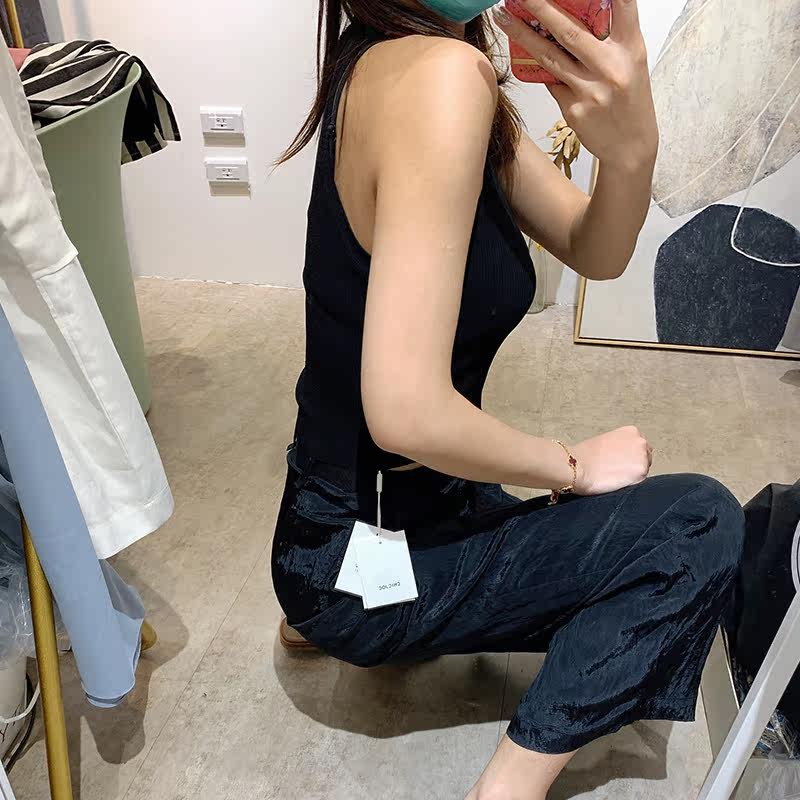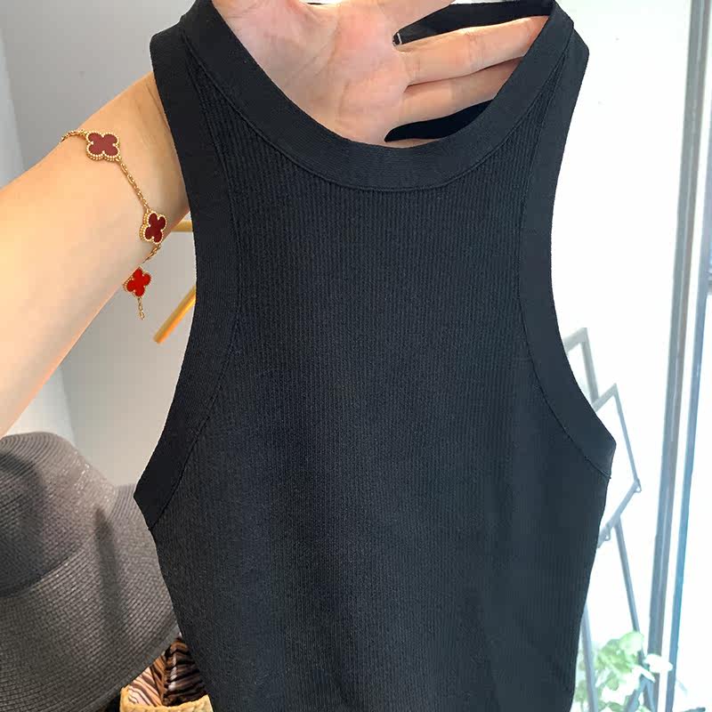 Sunny's favorite boutique, cool, dare to hang neck, slim knitted short vest, high-quality inner suspender, bottoming, single wear