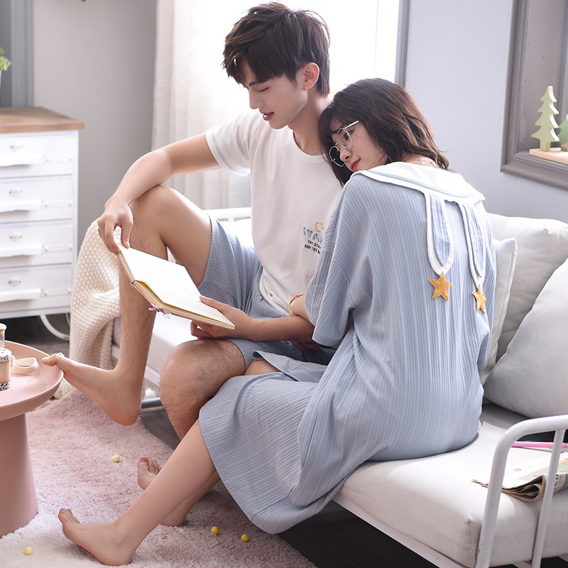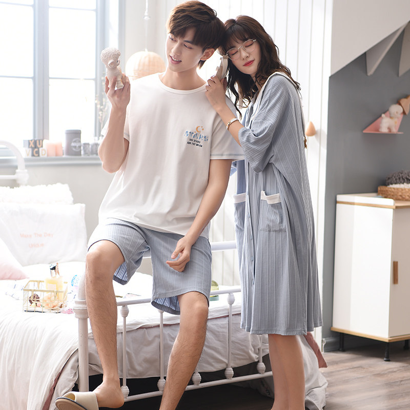 Couple pajamas summer pure cotton men's thin section cute pregnant women's nightdress women's large size net red hot style 2022 home service