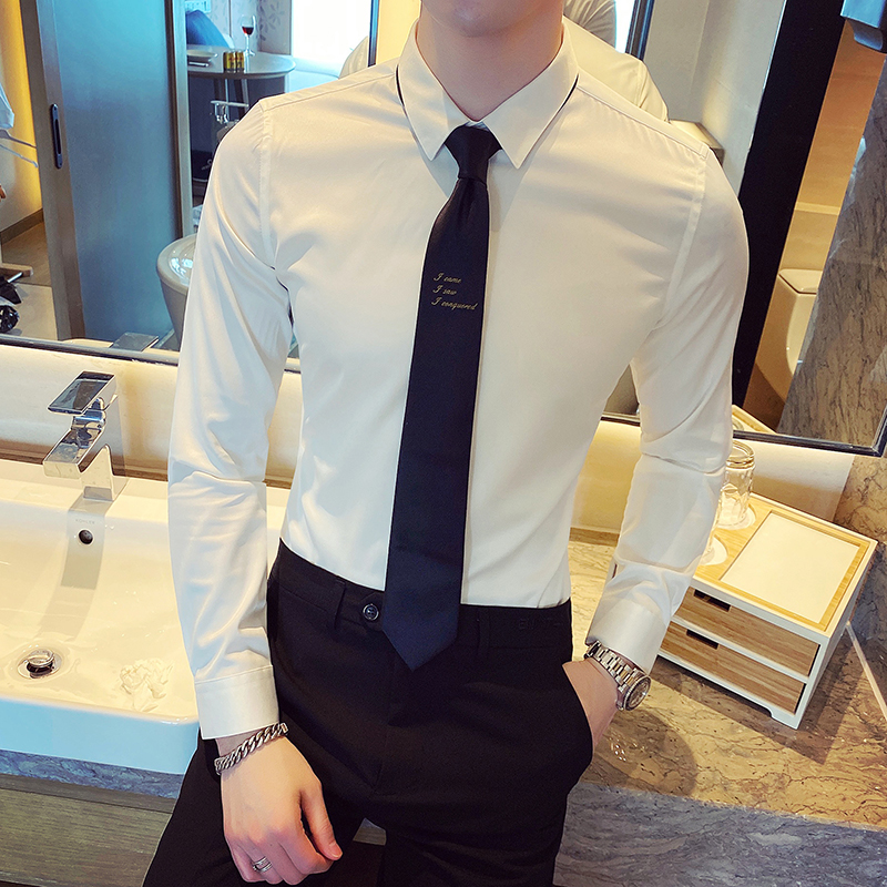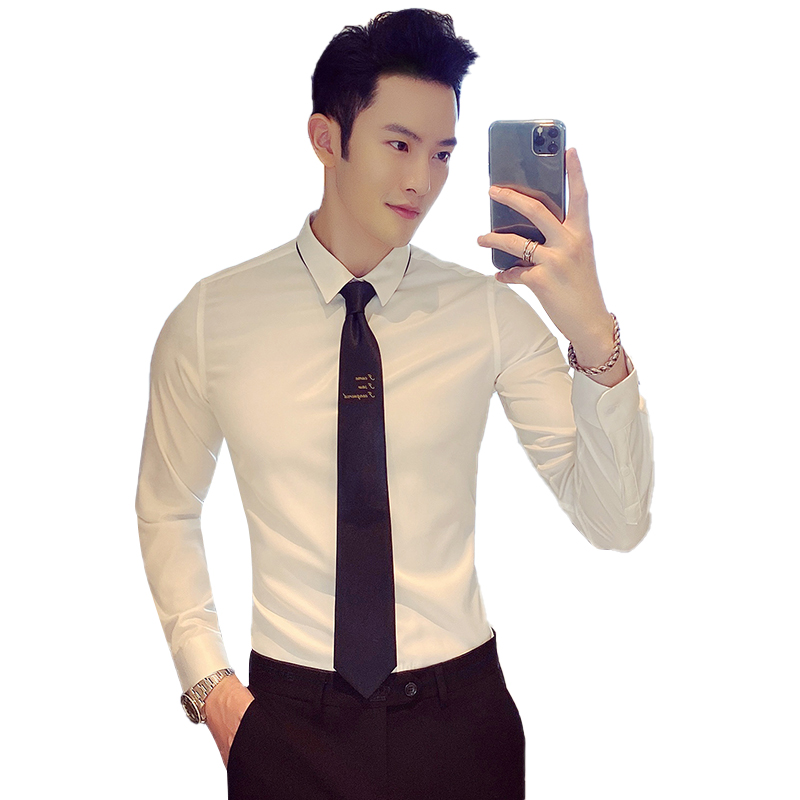 Shirt man long sleeve Korean version Trend free of hot business positive dress white shirt Inn to fix handsome bar professional dress-Taobao