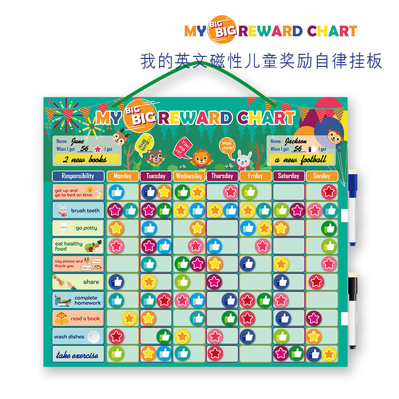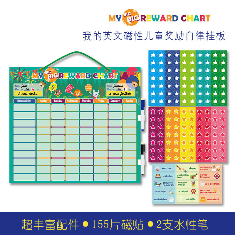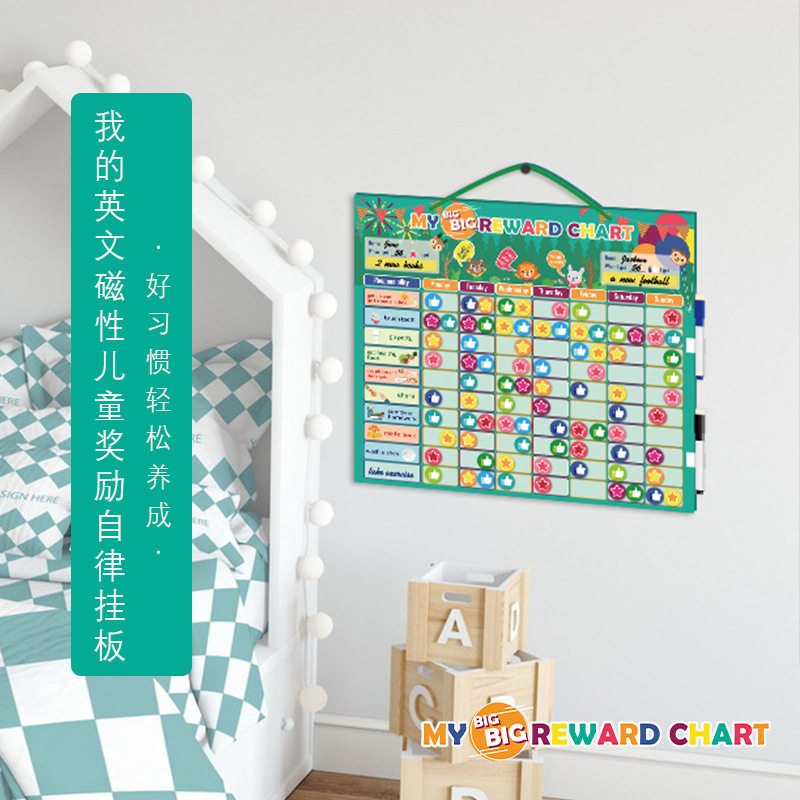 English magnetic children growth self-discipline table hanging board two treasure good habit formation reward and punishment punch card record table magnetic paste