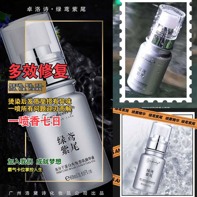 Green iris and purple tail essential oil spray leave-in hair care to improve frizz, moisturizing, supple, refreshing, non-greasy, lasting fragrance