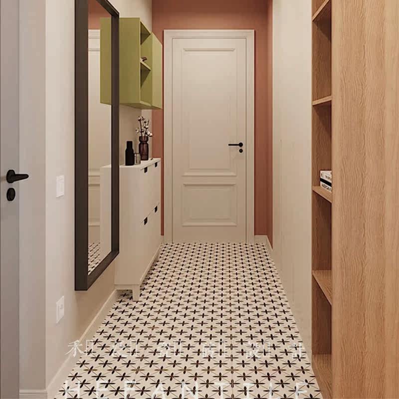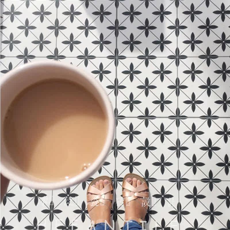 And pan Nordic black and white rice-word flower brick 200 Kitchen Makeup Room Parquet Tile Balcony Xuan Guan Anti Slip All Porcelain