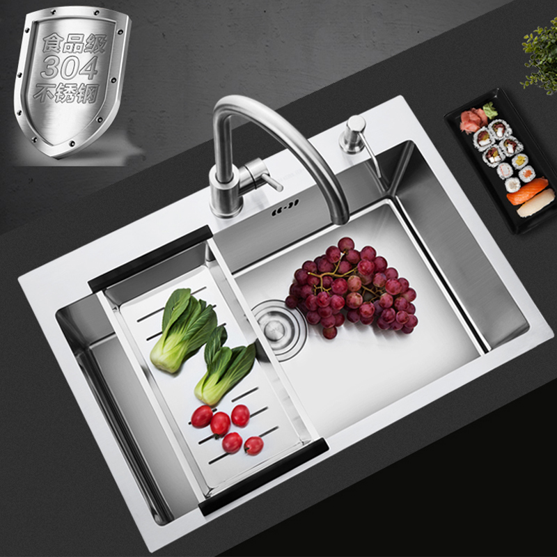 Kitchen 304 stainless steel brushed thickened single sink sink package large single sink washbasin washbasin sink