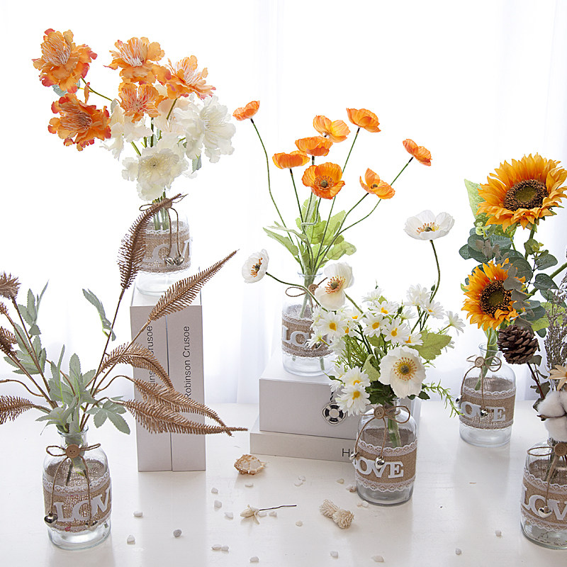 Sunshine Emulation Sunflower Sun Flower Bouquet Art Glass Vase Drying Flowers Art Suit Fields Fresh Bedroom Desk