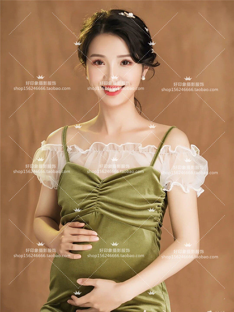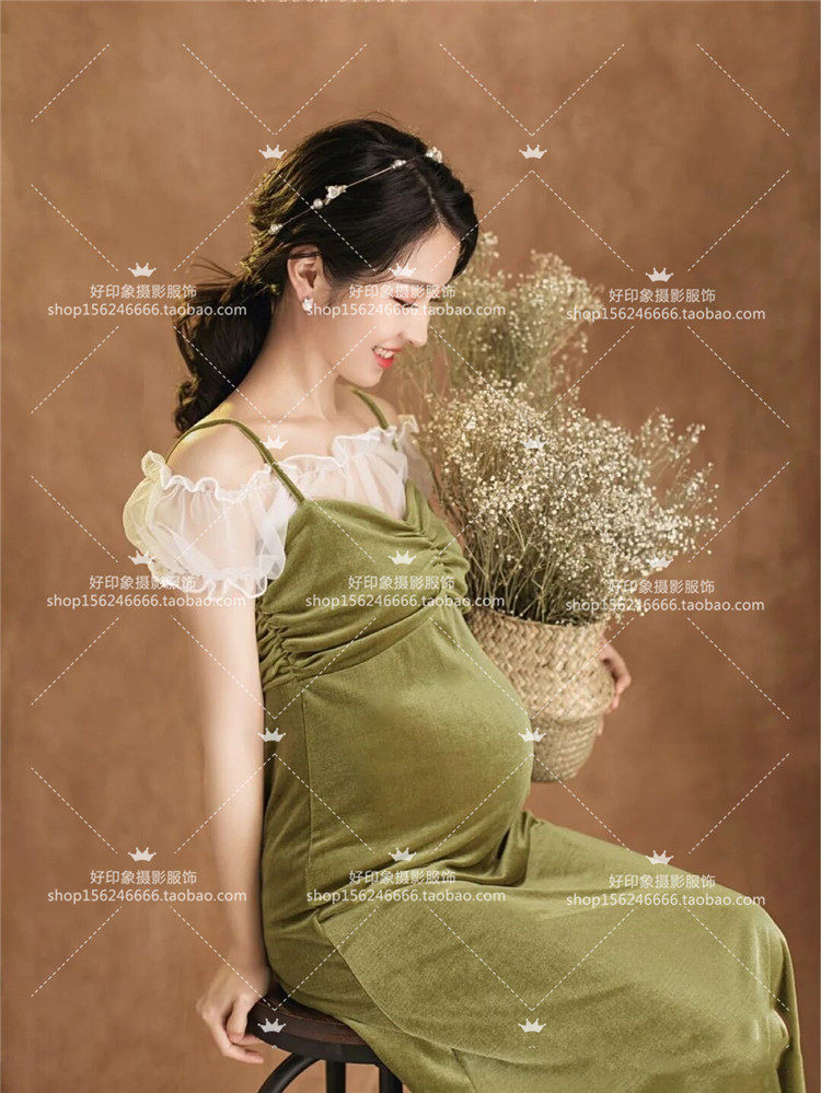 Exhibition Photography New retro green velvet small frescoed photo gallery Pregnancy Woman dress Genuine Dress Pregnant Woman Photo Costumes
