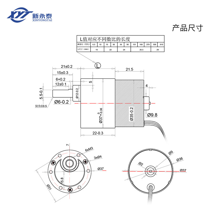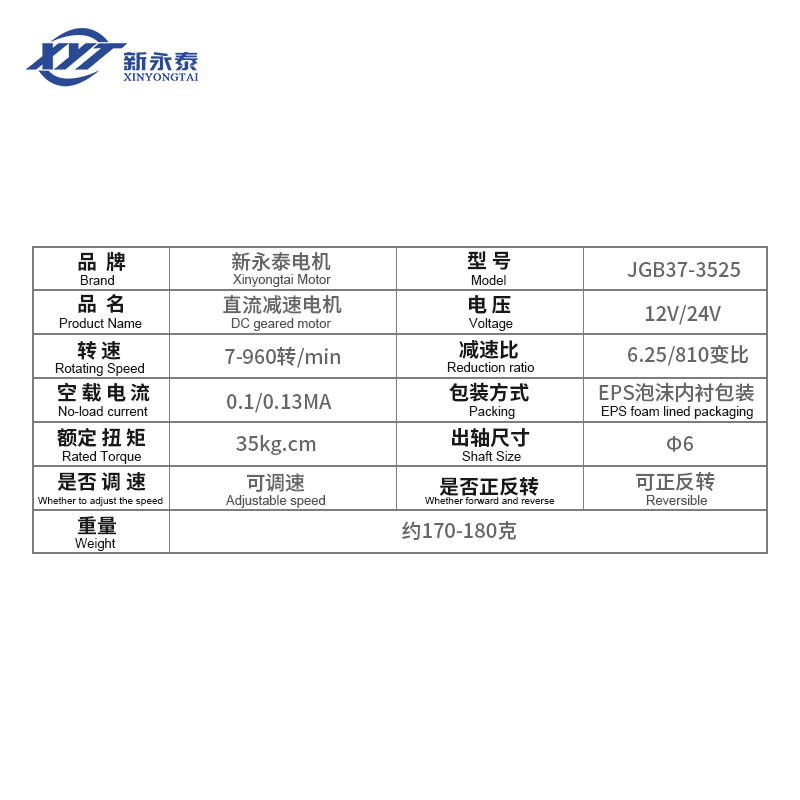 Xinyongtai 3525 miniature DC brushless deceleration motor speed motor large torque small motor 12v24v