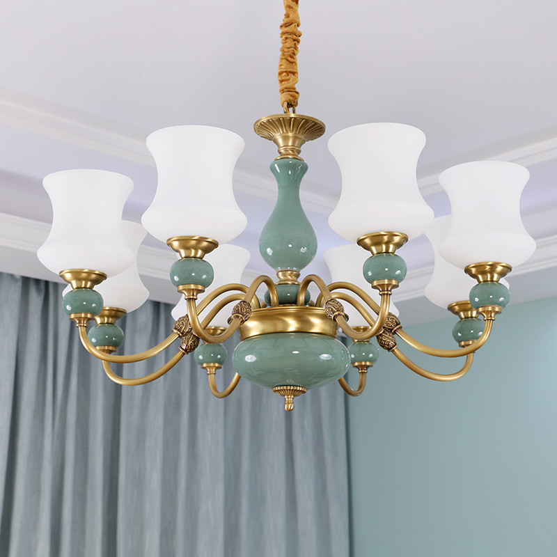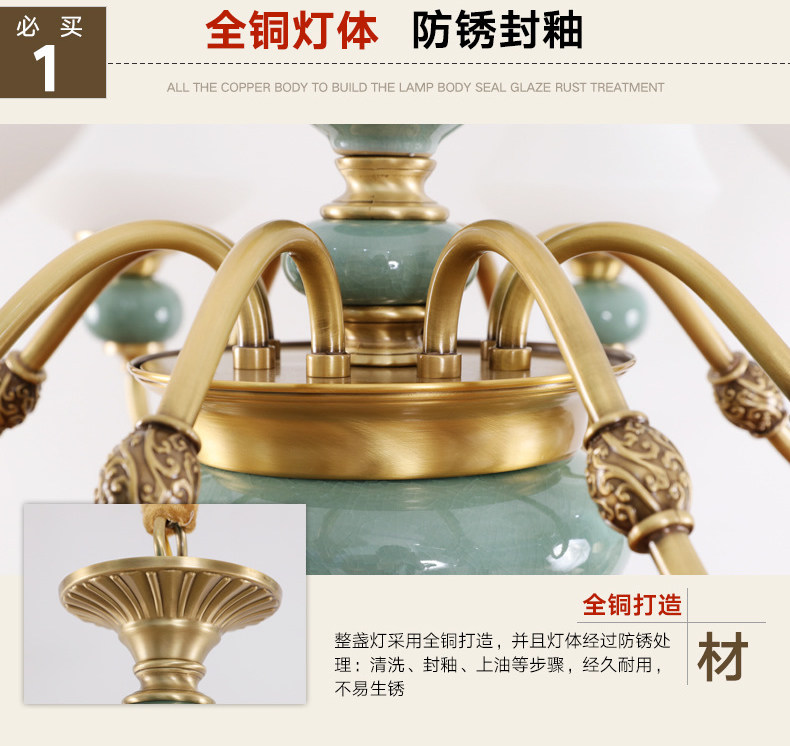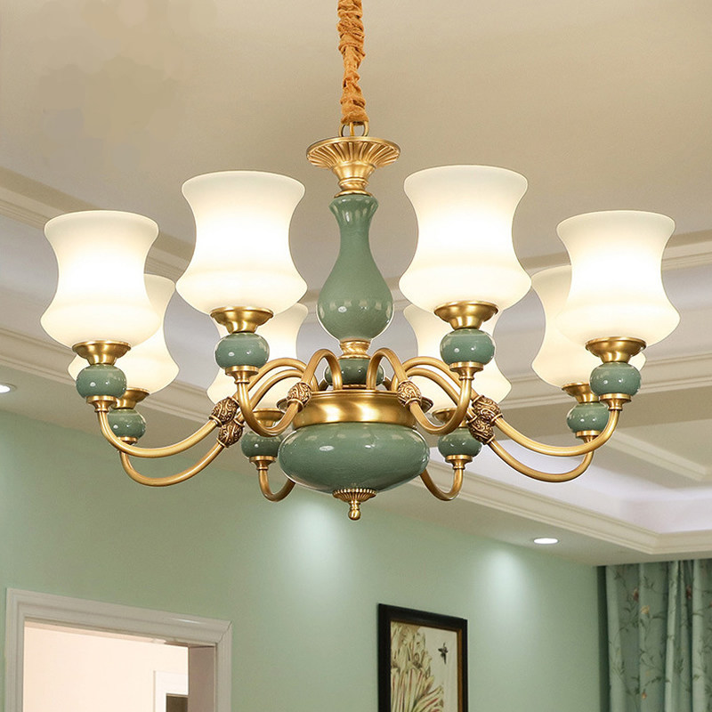 American chandelier light luxury ceramic living room lighting wall lamp aisle stair light dining room bedroom European pure copper lamps