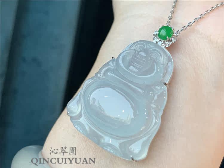 Myanmar Natural Jade A Goods High Ice Seed Light Station Buddha Da Maitreya Buddha Lady Pendant Pendant Identification HOT