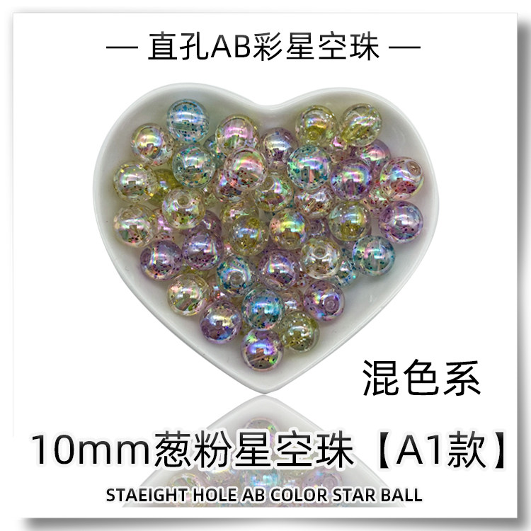 10mm straight holes AB color green onion powder acrylic starred Pearl small red book crown handmade DIY bag braided string bead material