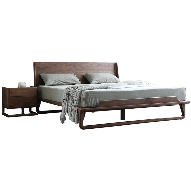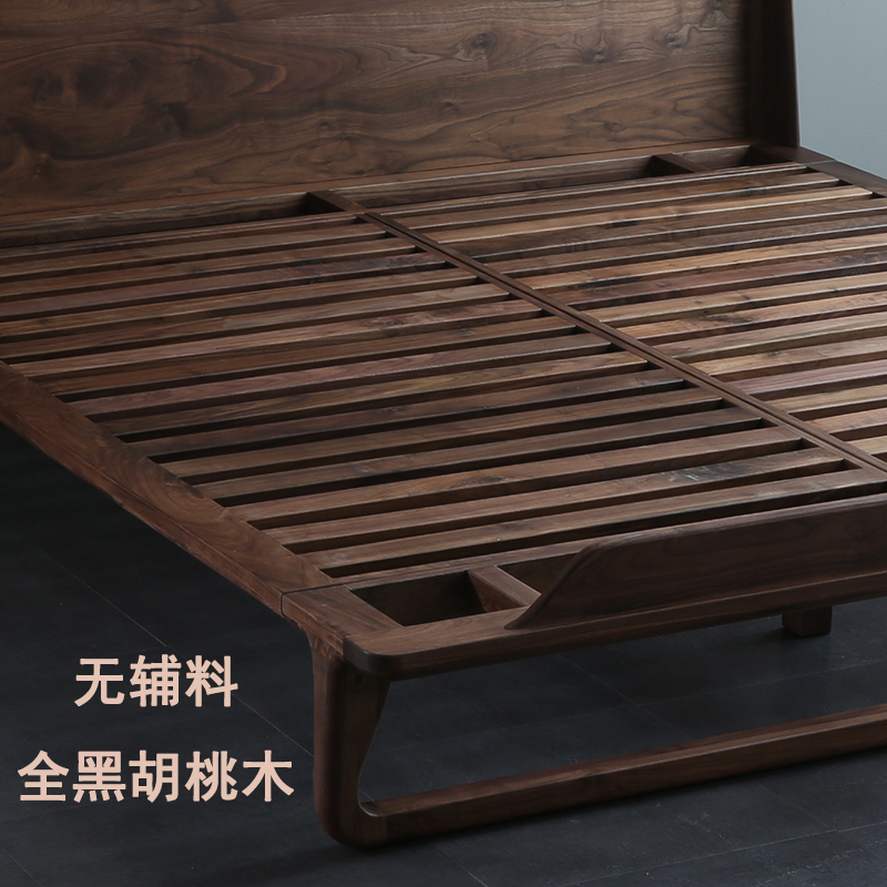 Black walnut bed Nordic solid wood bed modern 18m double bed mortise and tenon simple Japanese style light luxury bedroom marriage bed