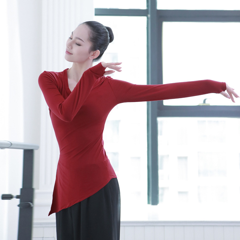 V-neck long-sleeved set refers to dancing clothes with split ends to show thin dance clothing practice clothes tops women's classical dance costumes