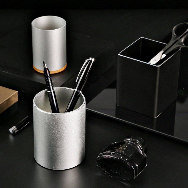 Creative aluminum alloy pencil square metal office student desktop reception box large simple gift custom engraving
