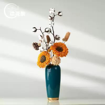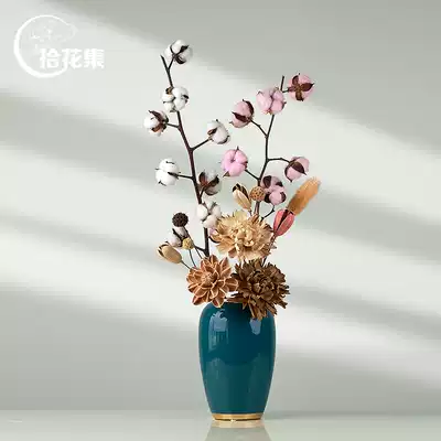 Dried flower bouquet Nordic style flower arrangement Dried flower real flower bedroom dried flower decoration decoration Air-dried and vase set Literary and art
