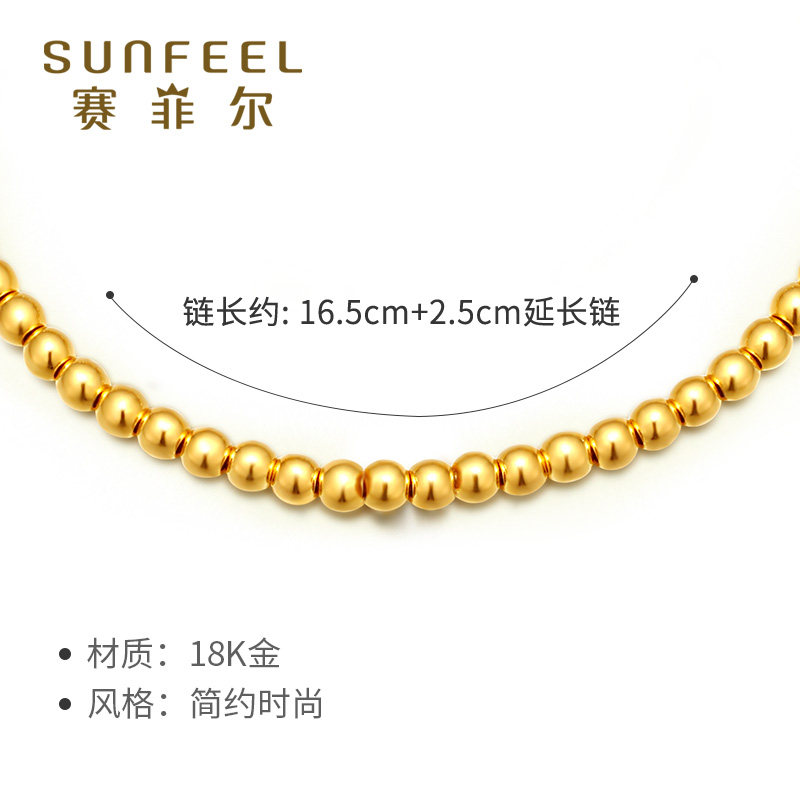 18K yellow gold ball bracelet (chain length about 16 5cm extension chain about 2 5cm)