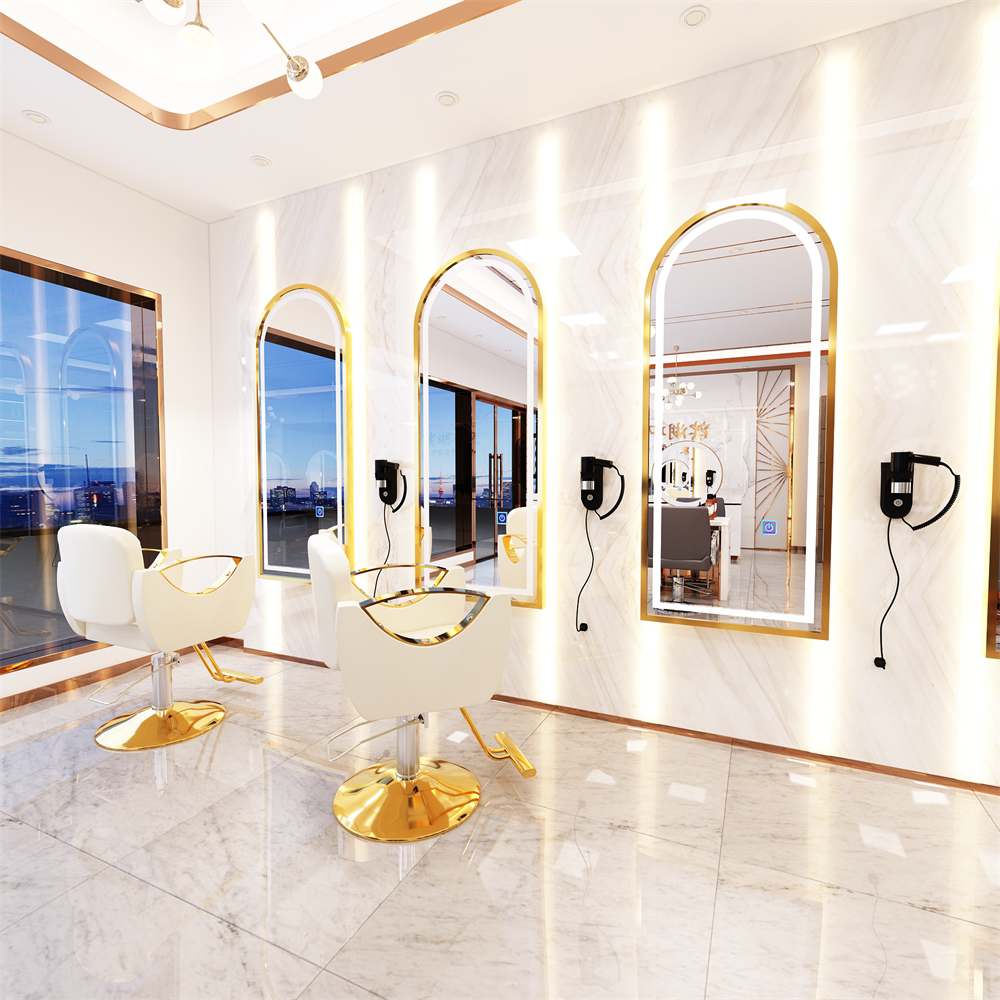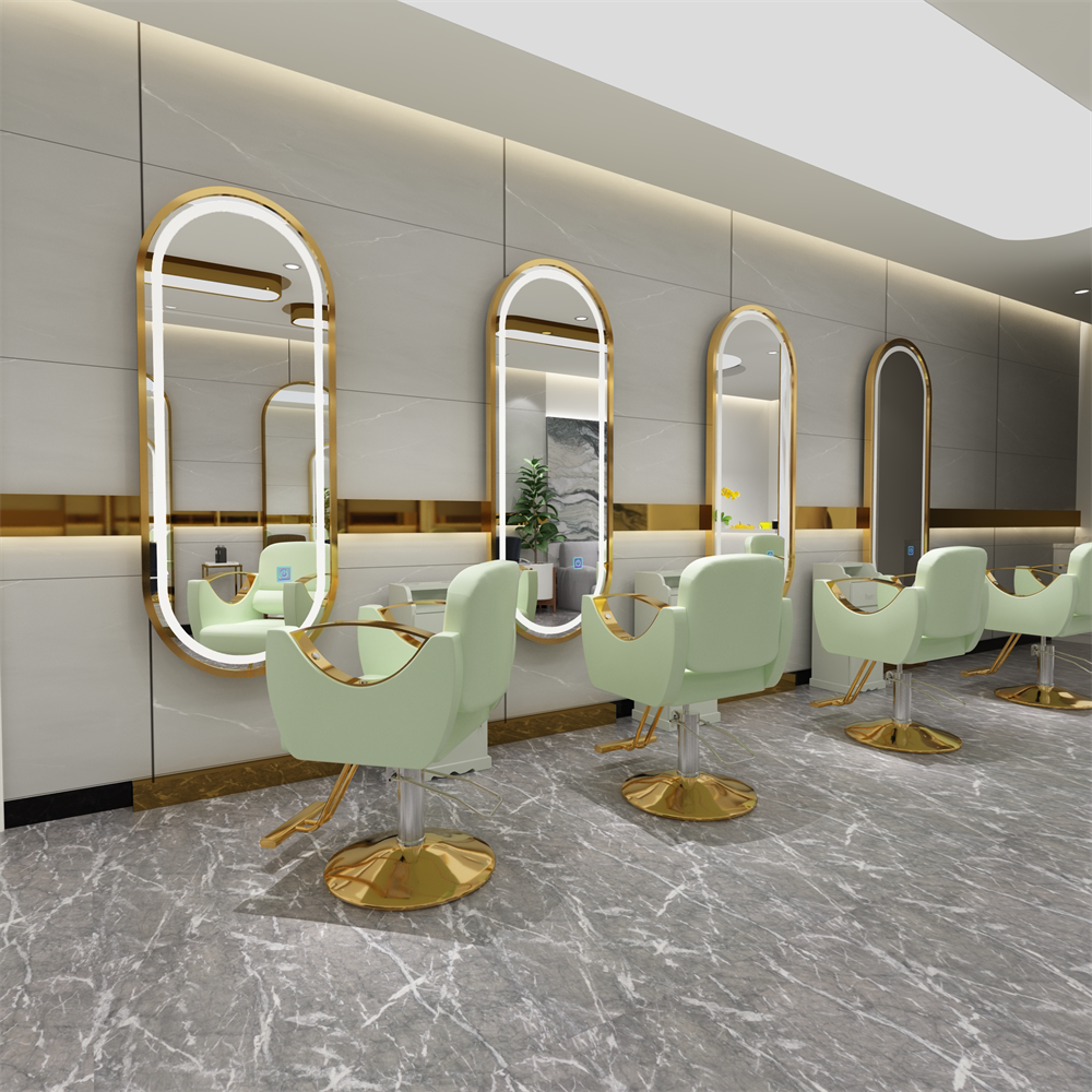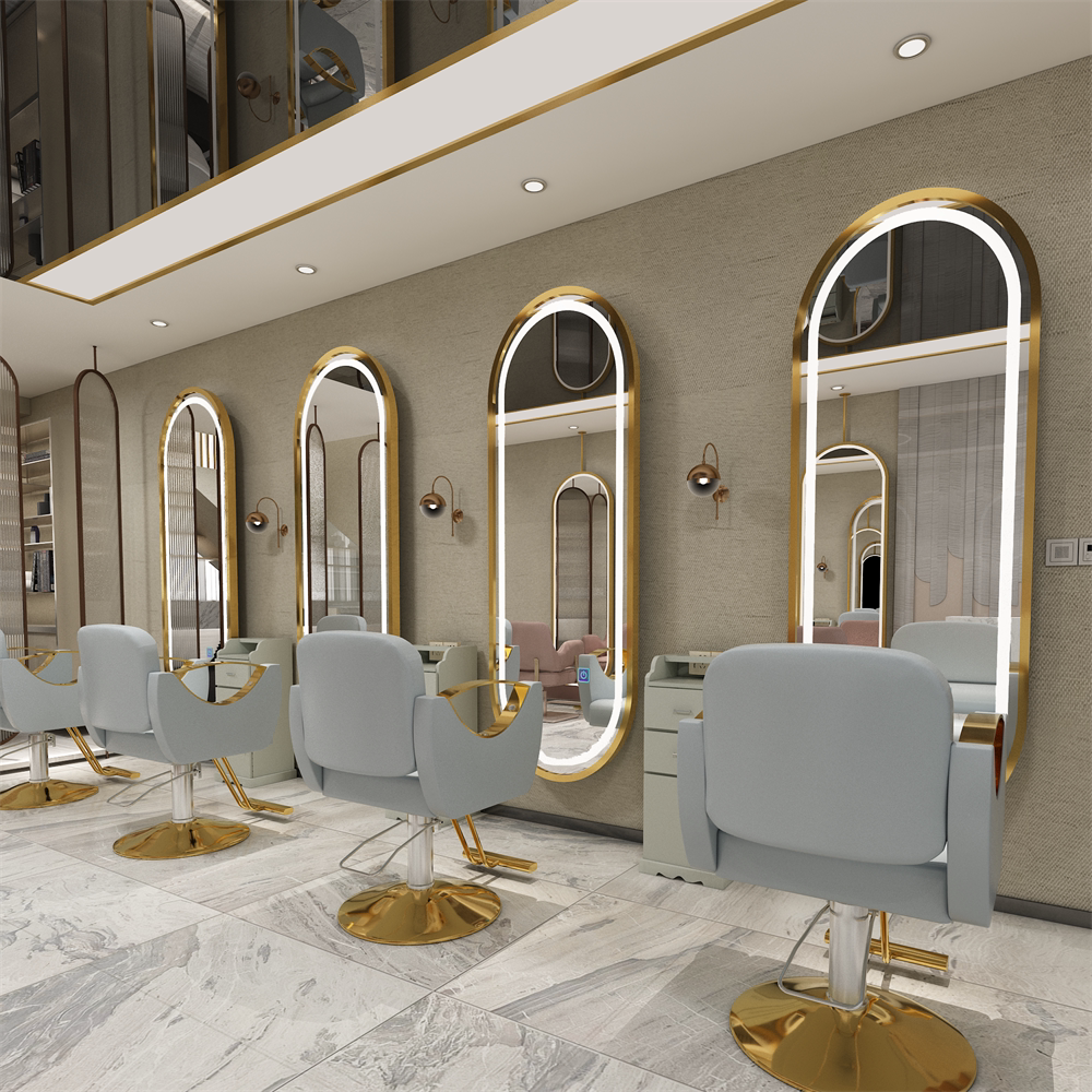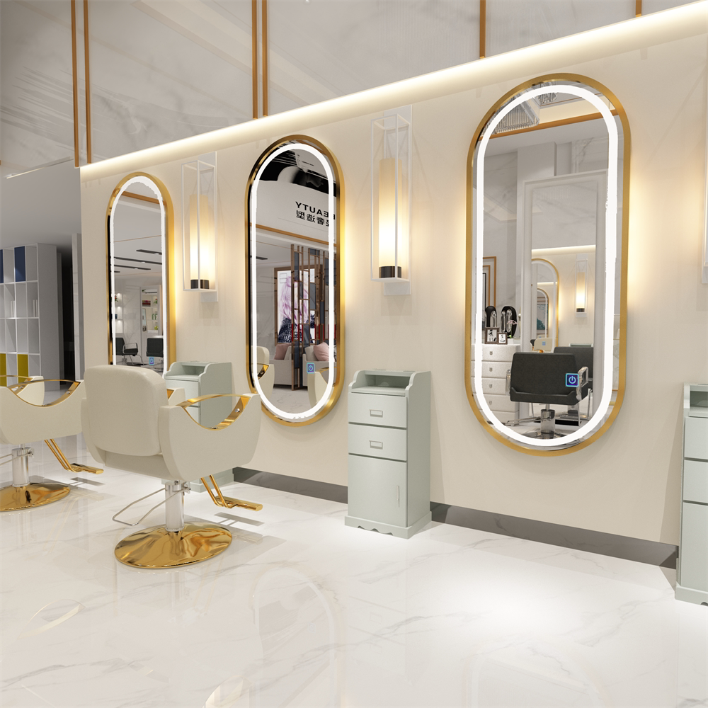 HairdressingShop Mirror Hanging Wall Beauty Hair Mirror Table Single Sided Floor With Lamp Mesh Redness mirror wall-mounted hair salon special