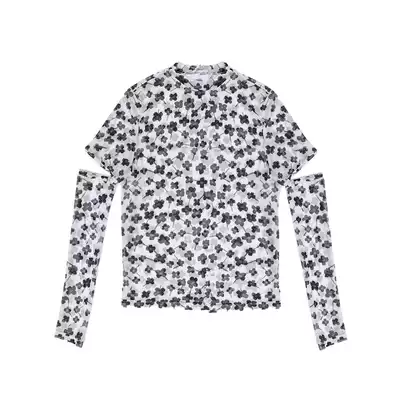 SunsetPark original bullet small floral net gauze bottoming removable sleeve retro coat short sleeve T-shirt female summer