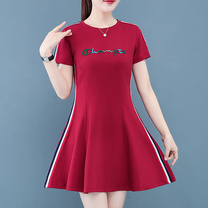 Women's summer clothes 2022 new cotton dress fat mm loose and thin cover belly short-sleeved T-shirt skirt to reduce age