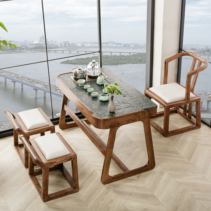 Balcony tea table and chair combination New Chinese Kung fu solid wood bed and breakfast Simple modern Zen household new tea table