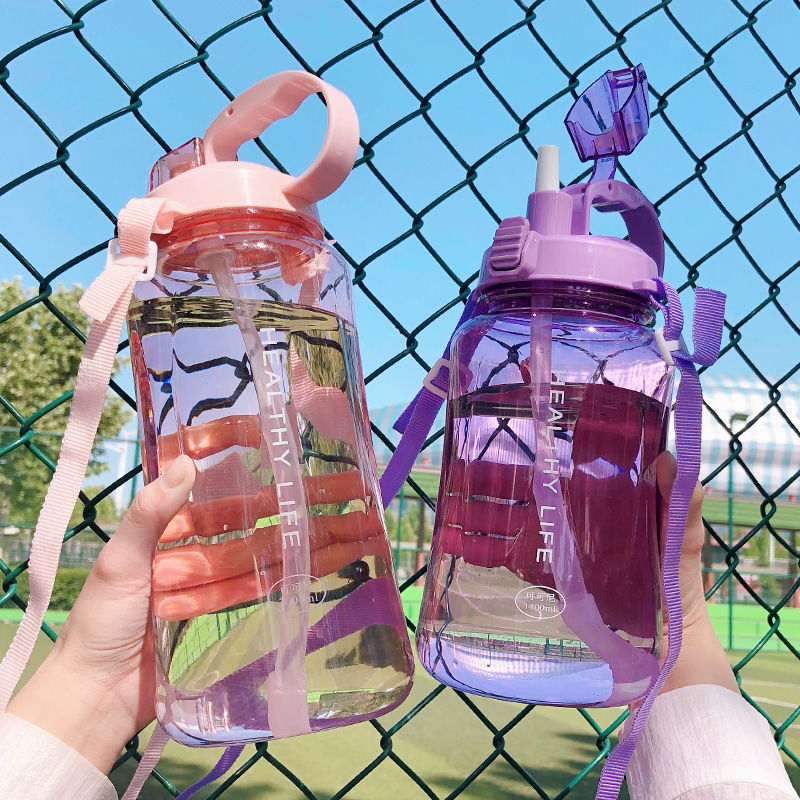 Large-capacity plastic water glass female portable water bottle straw large space cup sports kettle 2000ML male mug