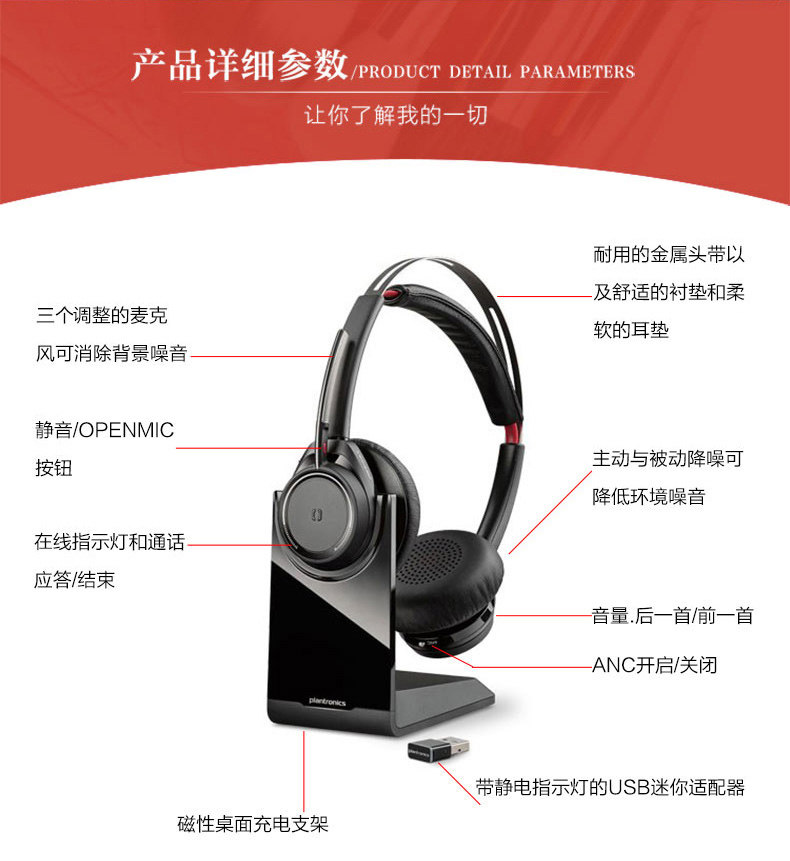 Plantronics B825 UC Chat Video Conference Wireless Bluetooth Headwear