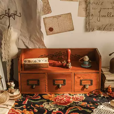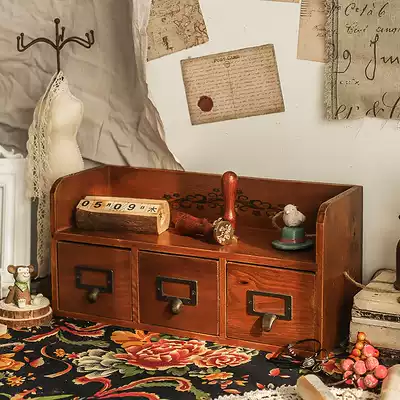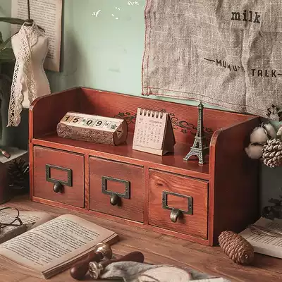 Desktop storage box drawer type student office finishing jewelry sundries household multifunctional wood grain small storage rack