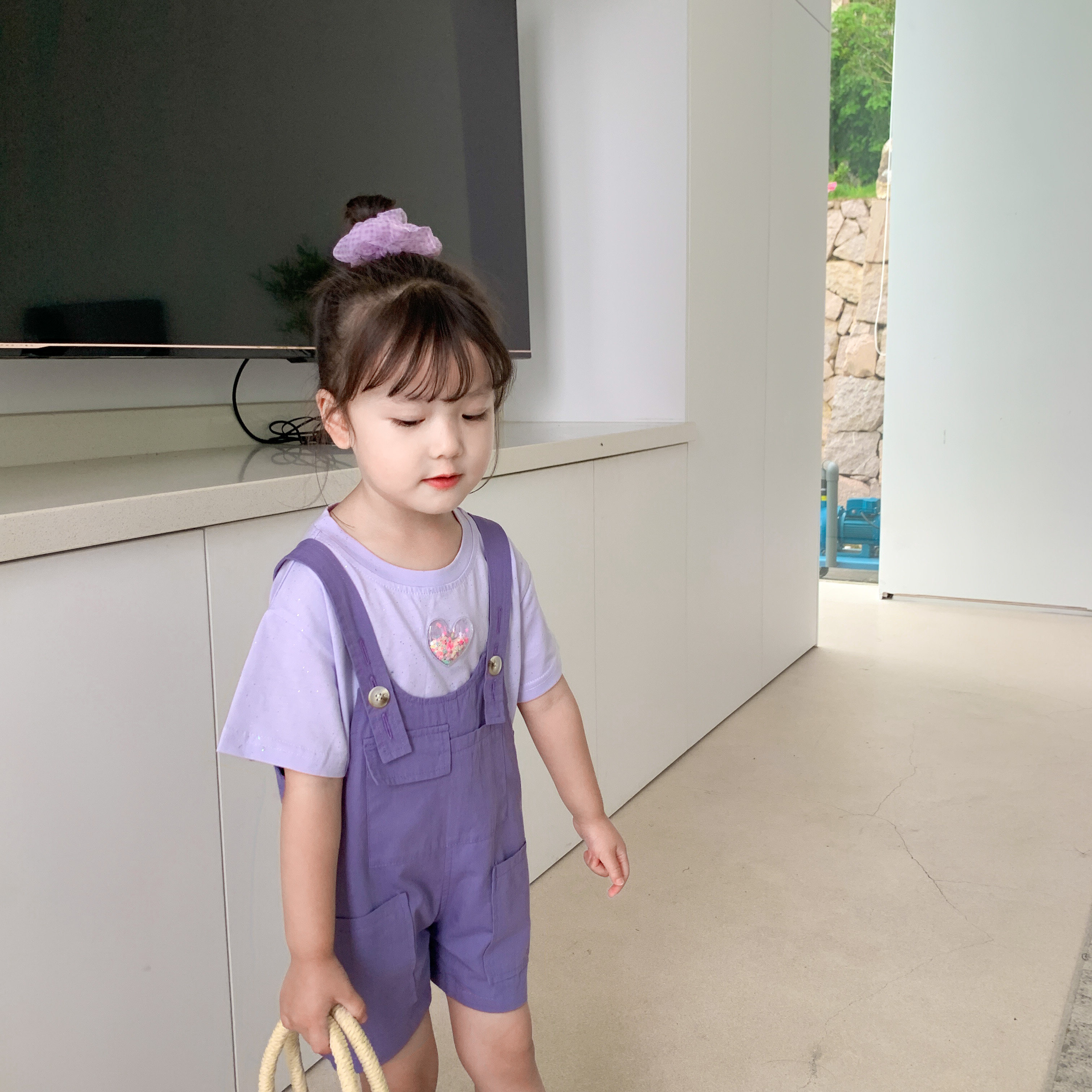 Children's Summer Girl Purple Strap Pants Han Edition Kids Baby Strap Shorts Summer Thin Pants